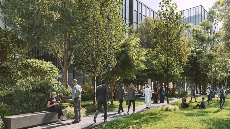 The development offers more than just office spaces; it fosters a culture of collaboration and well-being. With wide, open floor plans and floor-to-ceiling windows allowing ample natural light, the workspace of tomorrow is here today. Green rooftop terraces provide venues for outdoor meetings, events, and networking, complemented by juice bars and yoga zones to promote employee health and wellness.