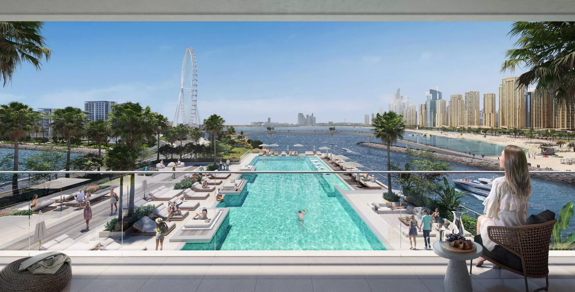 Bluewaters Bay is an upscale residential development by Meraas Holding, which is located on the iconic Bluewaters Island next to JBR beach. As an addition to the existing Bluewaters Residences complex, the Bluewaters Bay was launched in Q4 2022 and comprises 2 beautiful towers, with a selection of stylish 1–4 bedroom apartments and 3-bedroom opulent penthouses with generous living and dining spaces. In total, the residential project plans to have 672 residential units plus 1 retail unit.