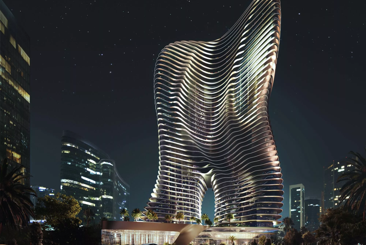 Bugatti Residences by Binghatti is the world’s first project by the renowned French luxury car brand Bugatti. Binghatti Properties, one of Dubai’s leading developers, is the creator of the complex. Located in the thriving neighbourhood of Business Bay, the upcoming striking landmark will comprise 2 towers, each 52 storeys high (4B+G+1P+45+R).
