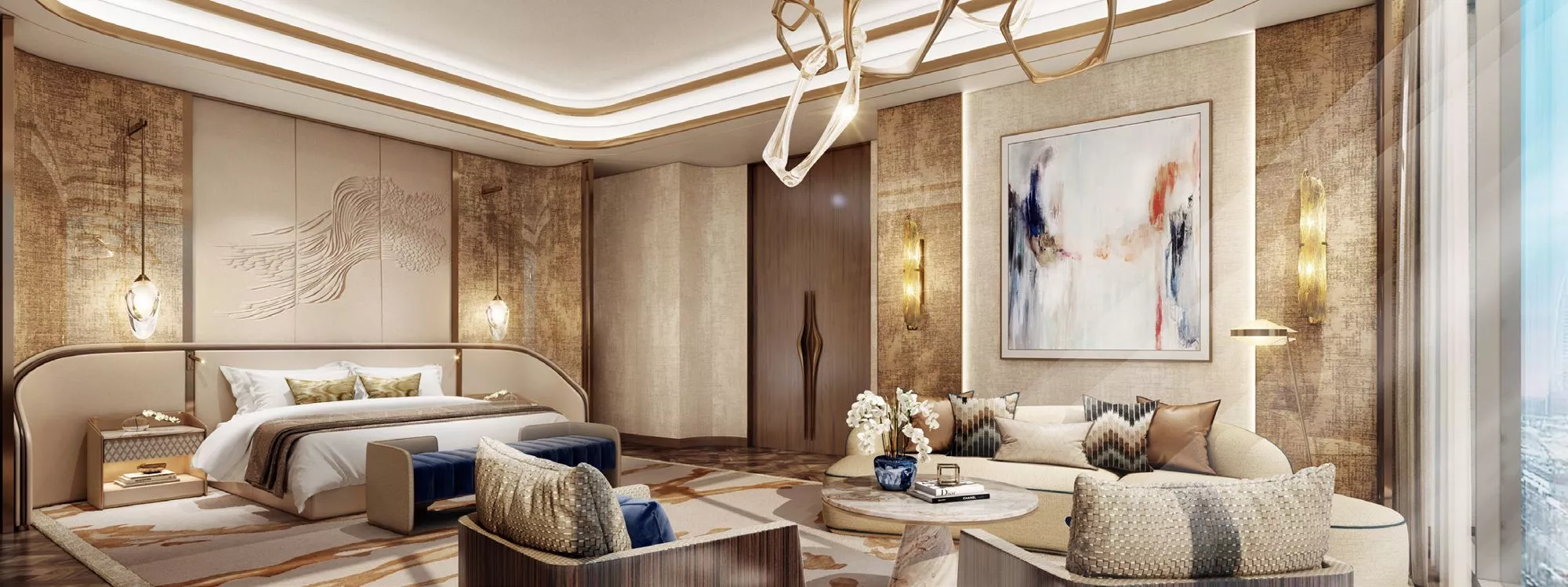The branded complex offers 122 designer residences, including chic 2-3 bedroom apartments, 4 luxury 4-bedroom half-floor Sky Mansions and 2 uber-exclusive full-floor 4-bedroom Sky Palaces. The properties measure from 1,527 sq. ft to 12,263 sq. ft in size. The beautifully designed apartments come in 5 types: Opulent Suite, Harmony Suite, Serenity Suite, Regal Suite and Tranquility Suite.