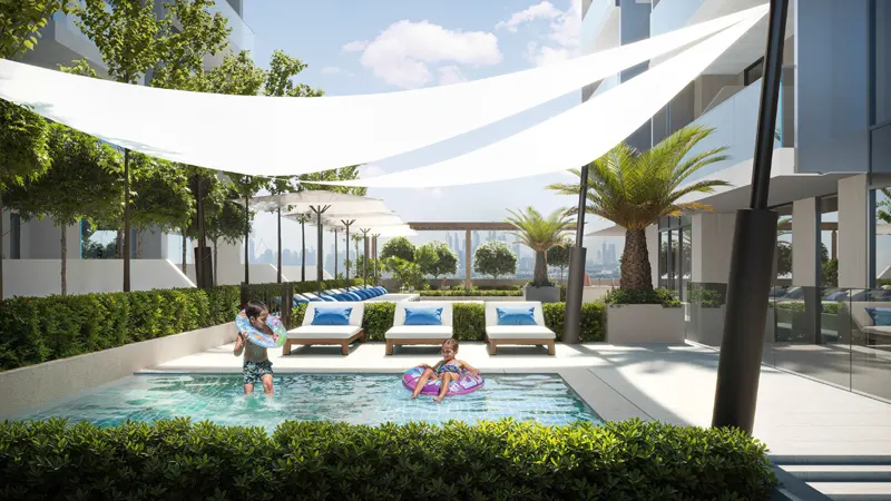 For those seeking relaxation and recreation, it offers an outdoor swimming pool with poolside sun loungers, inviting residents to dive into luxury and soak up the sun-kissed serenity. Meanwhile, the dedicated kids' swimming pool ensures endless fun and safety for little ones, while the outdoor kids' play area encourages imaginative play and exploration.