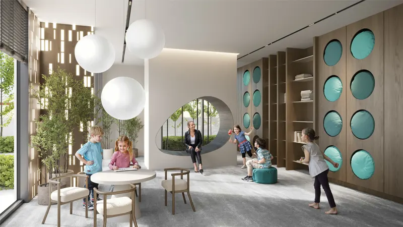 Beyond its stunning architectural design, the development boasts an array of amenities curated to enhance every aspect of residents' lives. Step into the lobby, where 24/7 concierge service awaits, providing a warm welcome to residents and their guests. Ignite your child's imagination in the vibrant kids' playroom, where laughter echoes and friendships blossom amidst a world of interactive games and whimsical adventures.