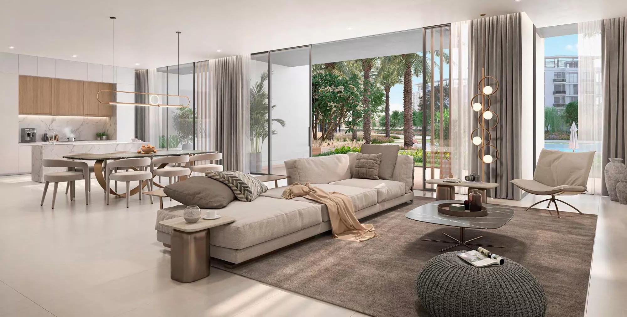 The high-end residences will offer the finest views of the crystal lagoon and Dubai skyline. The interiors will be executed in neutral colours, allowing you to customise your home to your liking. To create a more comfortable living environment, the master developer will ensure the availability of built-in kitchen appliances from leading European brands.