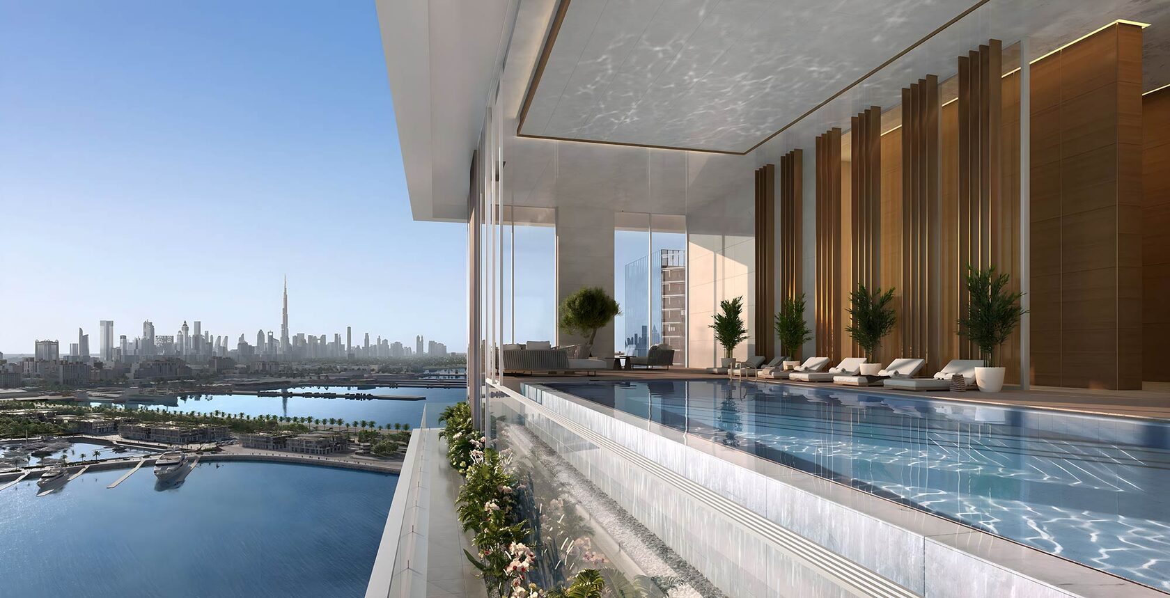 Inspired by tropical resorts, the property features lush landscapes, elegant spaces, and resort-like amenities that ensure every day feels like a vacation. Upon entering the grand lobby, you are greeted by a world of sophistication and tranquillity, designed to evoke the eternal bliss of an endless getaway. Whether it's the infinity pool overlooking the Marina or the private rooftop terrace of a penthouse, it ensures a seamless blend of relaxation and luxury.