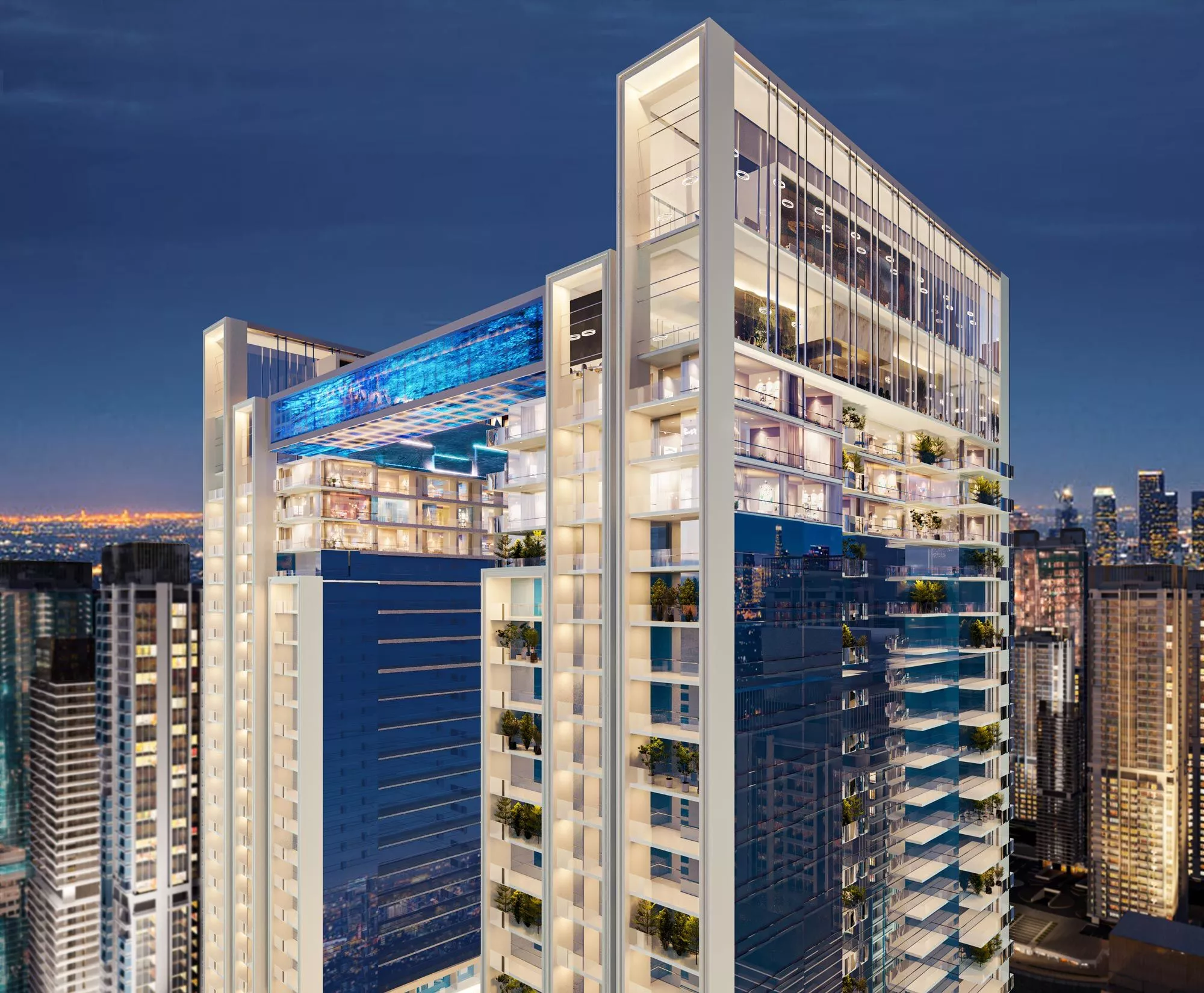The sizes of the branded properties in Viewz by Danube ranges from 401 sq. ft to 5,765 sq. ft. Each unit will feature a balcony, which will overlook the scenic leafy surroundings of JLT, whilst select properties will come with a private study for the utmost convenience of homeowners. Most importantly, all presidential suites and 2-3 bedroom apartments will have private swimming pools, which will add a resort-like atmosphere to the living environment in Viewz by Danube. The key features of the sky villas may include a maid’s room, a store room, a terrace and a lift.